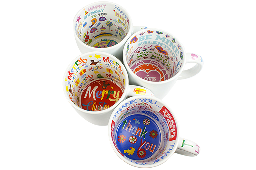 - Keramiktasse mit C-förmigem Henkel mit Innen- und Henkeldruck